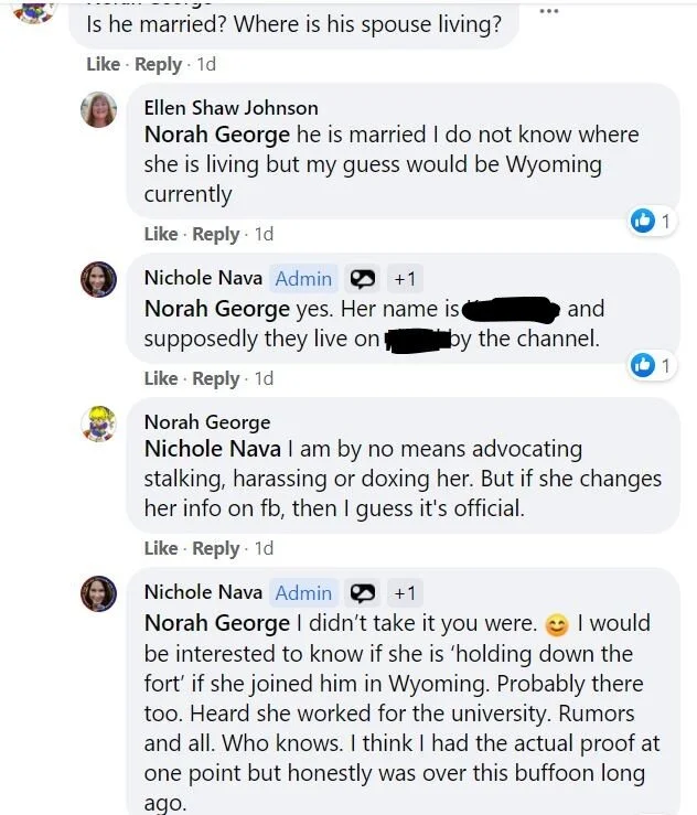 Of course, "safe" Chico, led by Teri Dubose and cheered on by Rob Berry, Nichole Nava and a few other self-styled extremist “leaders” are taking no responsibility. “We never directed anyone to contact Scott’s employer,” Teri says, while allowing post comments like those below, encouraging people to do just that. Nava even went so far as to share Scott's wife’s name and the location of their home.