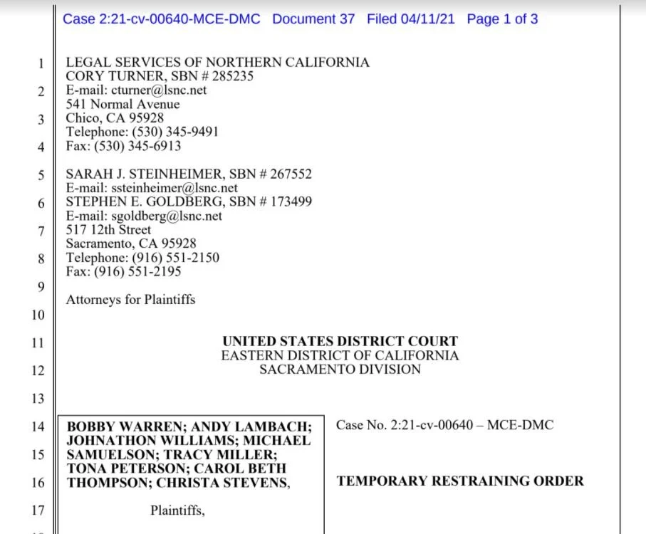 The court has granted an emergency restraining order against the City of Chico, preventing them from clearing Comanche Creek of campers for now.
