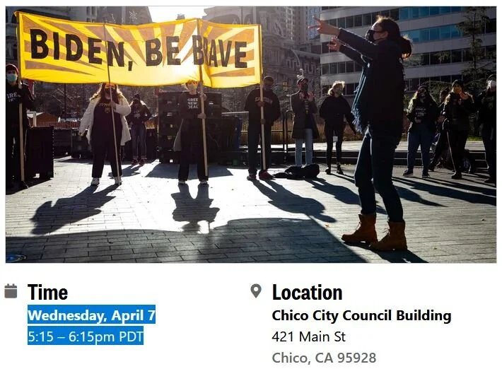 As the pandemic eases it’s grip on the North State, local organizations are beginning to plan events, and we are excited to see Sunrise Chico beginning to get more active again. Important work lead by young people to help ensure a just and livable future for all of us. From Sunrise Chico: